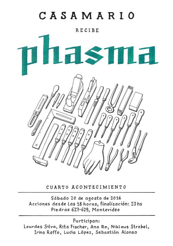 Acontecimiento 4 – Phasma 20 de agosto de 2016 Phasma – Cuarto acontecimiento El acontecimiento proponía presentar un panorama de una expedición realizada. Invitamos a los públicos a vivenciar los pasajes, territorios explorados, objetos y dispositivos de búsqueda. Las 5 horas del acontecimiento pondrán en juego experiencias, imágenes y materias, amplificando las posibilidades de visionado y de narración de lo que aún acontece. «Por definición, el investigador va tras algo que no tiene a mano, una cosa que se le escapa, que desea. ¿Cuál es esa cosa? “Una especie de cosa en sí oscura, tentadora y misteriosa, residuo supremo que se puede embellecer con el valor más ideal o con el más sórdidamente material. […] Cosa que, por supuesto, el investigador nunca conseguirá capturar ni dominar […] A veces se detiene en su recorrido, desconcertado: de repente, ante su mirada ha aparecido otra cosa que no esperaba. No la cosa en sí de su búsqueda fundamental, sino una cosa fortuita, explosiva o bien discreta, una cosa inesperada que estaba ahí, en el punto de paso. No obstante, ante esta cosa, el investigador percibe oscuramente que ha… encontrado algo. Pero ¿de que le sirve lo que ha encontrado para lo que busca? Esta cosa accidental, ¿no interrumpe su “programa”, como suelen decir los profesionales de la “investigación”? Sin duda. Al detenernos sobre el acontecimiento imprevisto, ¿no corremos acaso el riesgo de dispersarnos, de poner en peligro nuestro propio método? Sin duda. Pero si tenemos a bien interesarnos un poco por ese hallazgo, resulta ser de una generosidad, una fecundidad sorprendente.» (Georges Didi-Huberman, Fasmas. Ensayos sobre la aparición 1) Participan: Lourdes Silva, Irina Raffo, Rita Fischer, Niklaus Strobel, Lucía López, Ana Ro, Sebastian Alonso.