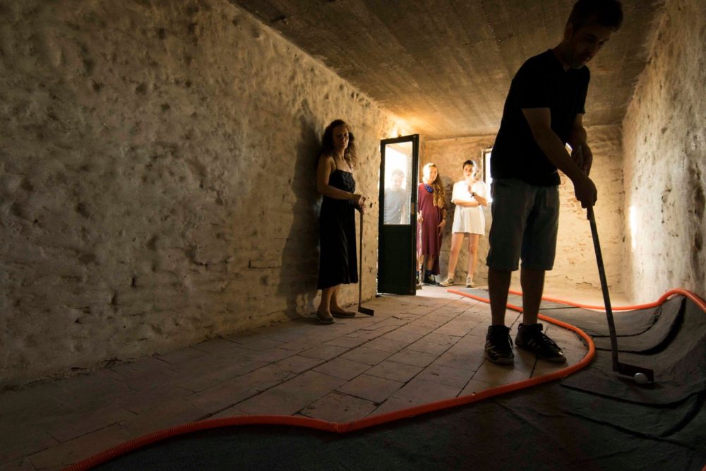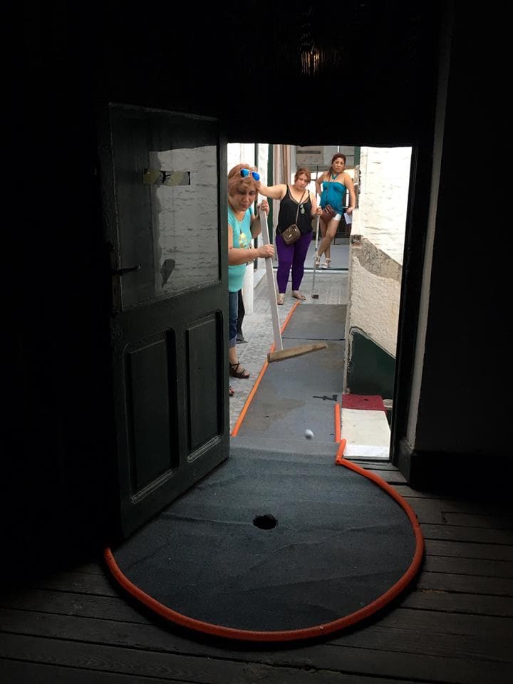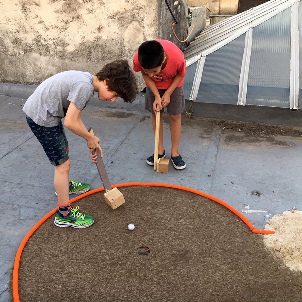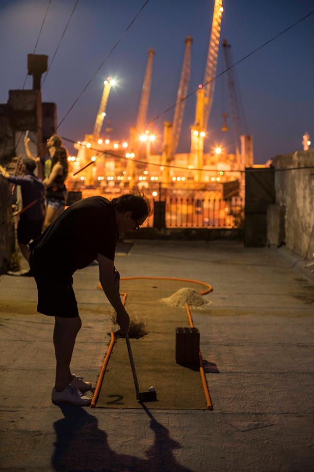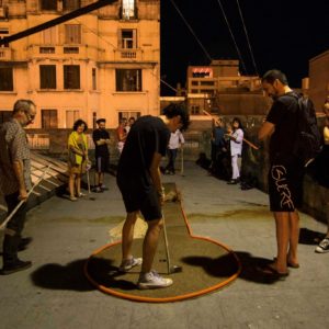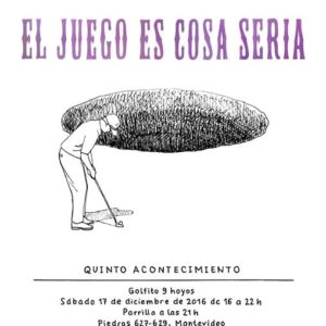 Acontecimiento 5 – El juego es cosa seria Proyecto CasaMario recibe “EL JUEGO ES COSA SERIA”. Quinto acontecimiento Programa “Acontecimientos: curadurías/producciones colectivas”. Participan: Rita Fischer, Fiorella Lettieri, Lucía López, Diego Masi, Irina Raffo, Lourdes Silva, Niklaus Strobel, Sebastián Alonso. Sábado 17 de diciembre de 2016. De 16 a 22 hs. Despedimos el año a las 21 hs con una parrilla. El minigolf nace de la crisis. Se cuenta que durante la Gran Depresión en Estados Unidos había alrededor de 300 canchas de golfito en las azoteas de Nueva York. Era más barato subir en ascensor a una torre que tomar un tranvía o el tren para salir de la ciudad y disfrutar del aire libre. Su ancestro, el golf, antes de volverse un deporte de paisaje rediseñado, ocupó terrenos infértiles, cerca del mar (los links). El minigolf a su vez, se adueñaba de azoteas sin uso, de terrenos baldíos y de sobras de espacio público al margen del tránsito vehicular. En CasaMario construimos un circuito de golfito en el edifico, desde la azotea hasta la planta baja. El mismo se tuvo que adaptar a la casa, como ésta tuvo plegarse a las necesitadas del juego. Cruzamos las pistas con obstáculos de otra índole y con fragmentos de discurso, tanto para corromper la costumbre del espectador desinteresado, como para incomodar al jugador, imbuido en sus deseos de ganar. La pelota y el jugador conforman un cuerpo dinámico que recorre una arquitectura afectada para el juego y la trasciende para alcanzar un paisaje urbano posible.