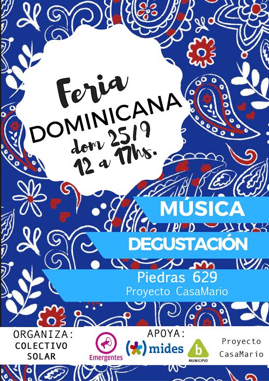 Colectivo Solar Colectivo Solar. Trabaja en el proyecto audiovisual “Dominicanas”, apoyado por Emergentes, Ministerio de Desarrollo Social y Municipio B. Referente: Mayra Da Silva