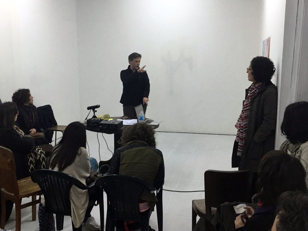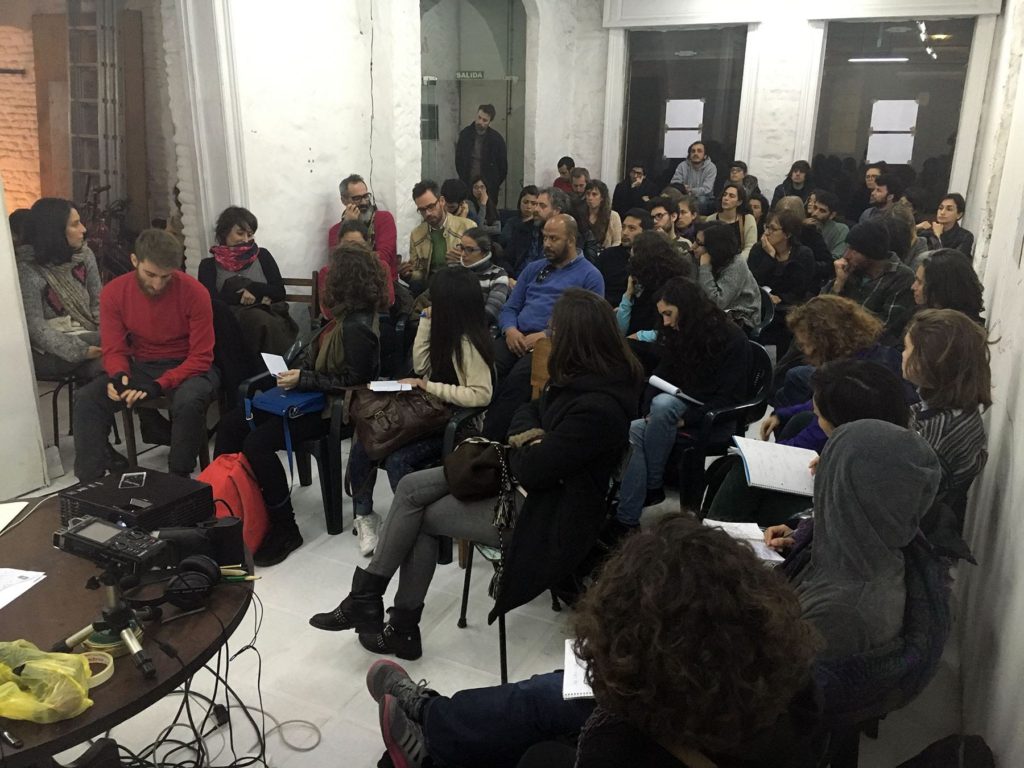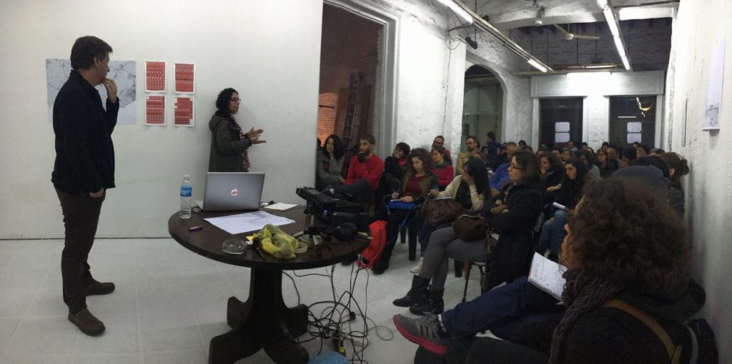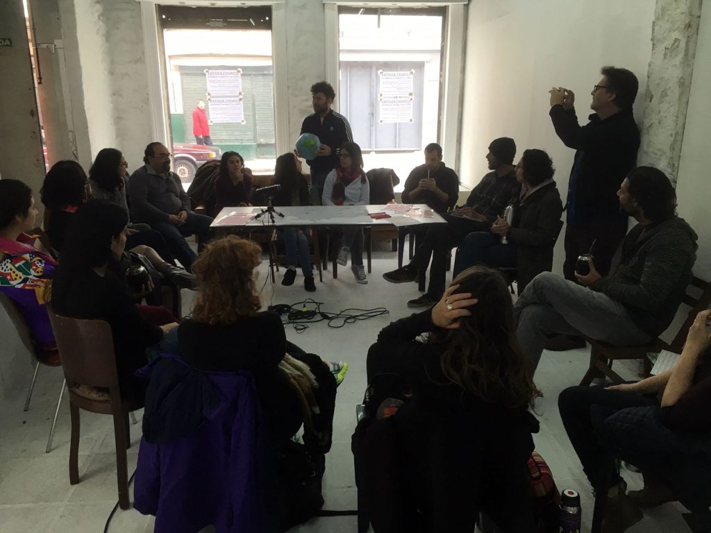 #30: Iconoclasistas Pablo Ares + Julia Risler (Argentina) Iconoclasistas (Pablo Ares + Julia Risler) (Argentina) Modos de hacer en común. Mapas, pedagogías y recursos libres para la construcción colectiva Día 1: Se presentaron algunos de los recursos gráficos y visuales que se despliegan en los talleres de investigación colaborativa, a fin de construir relatos colectivos críticos sobre el territorio, profundizando en experiencias específicas realizadas en los últimos años. Todas tienen como particularidad la implicación en un proceso de trabajo sostenido en la articulación territorial con diversos actores sociales, la construcción de consenso para la elaboración de un dispositivo táctico, pedagógico y comunicacional, y su libre reapropiación y difusión para ser activado en múltiples instancias. Día 2: Charla-conversatorio “Pedagogías críticas e investigación colaborativa. Limites y potencialidades”. Inicio de taller de mapeo colectivo para indagar acerca de cómo es posible organizarse, qué fronteras se encuentran al desarrollar estas prácticas y qué horizontes emancipatorios se abren en el devenir de las mismas.