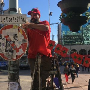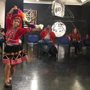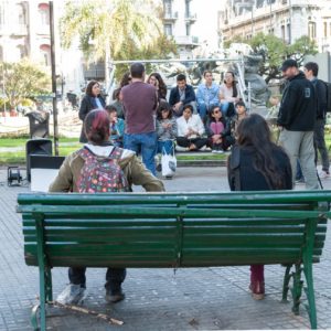 Resumen / Semana #5: fotografías de las 3 actividades principales de la semana La agenda de actividades de la quinta semana de residencia del proyecto en el Centro de Exposiciones Subte estuvo cargada. El foco de la agenda pública se centró en la propuesta de Núcleo de Investigación en Cultura Visual, Educación y Construcción de Identidad (IENBA – Udelar), cuya actividad principal del miércoles 15 de mayo se centró en torno a la generación de un espacio abierto de discusión de ideas sobre las mediaciones pedagógicas, museos, centros culturales, e instituciones educativas que tuvo lugar en el espacio de la explanada de la Plaza Fabini. “Thinking-Lab #0: Mediaciones Pedagógicas y Arte Contemporáneo” / Miércoles 15 de mayo. Fotos por Saly Gonzalez – Centro de Exposiciones Subte. Ésta no fue la única actividad que capturó la curiosidad de quienes circulaban o hacían uso de este espacio público. El día jueves 16, el colectivo de Perro Rabioso desarrolló una acción pública denominada Pescado Rabioso – zafarrancho ambiental, caracterizada por la bandera sanitaria que se ha podido apreciar frecuentemente en los últimos meses y que se ha convertido en una suerte de signo de éstos tiempos. Fue así que el colectivo la instaló en la ciudad, activándola en el espacio público junto a transeúntes en la principal avenida de la ciudad, donde reside Artigas (Plaza Independencia), y donde reside Proyecto CasaMario en el Subte (Plaza Fabini). Performance pública zafarrancho ambiental Pescado Rabioso /16 de mayo Para finalizar la semana, el día sábado tuvo lugar un evento propuesto por la comunidad peruana en donde se llevó a cabo un almuerzo que consistió en Ceviche y Papa a la Huancaína y un espectáculo de danzas tradicionales como la Marinera, Festejo, Saya, Baile de la selva Chipibo y Tondero junto a Sebastian Manayay y su grupo. Se baila: Marinera, Saya, Baile de la selva Chipibo, Tondero / 18 de mayo